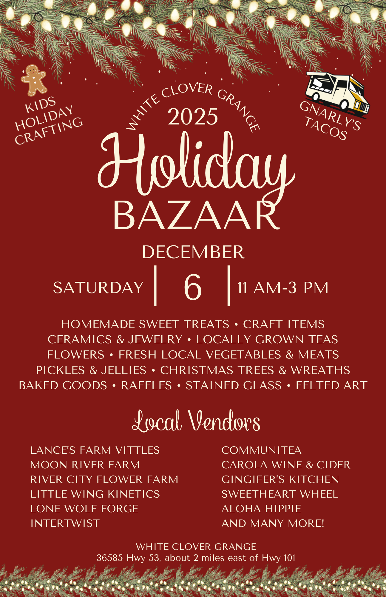 Holiday Bazaar 12/6 11-3 White Clover Grange in Nehalem