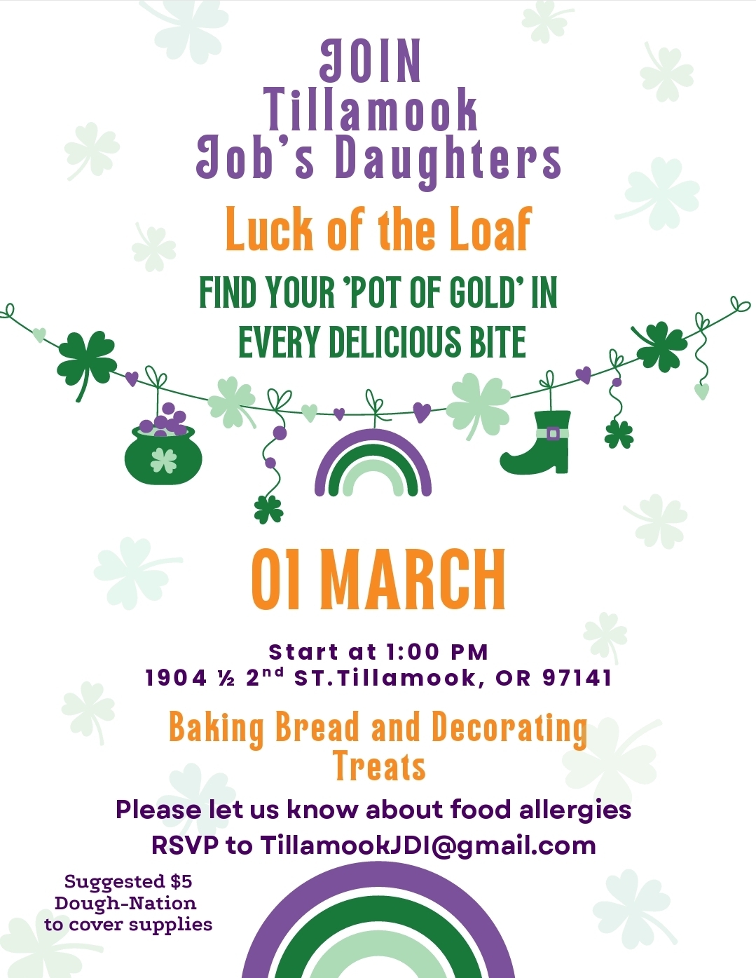 Job’s Daughters “Luck of the Loaf” baking event – Change of Date